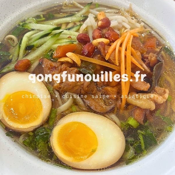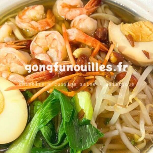 (crevettes, algue, carotte, légumes, ciboulettes, crevettes séchées)
